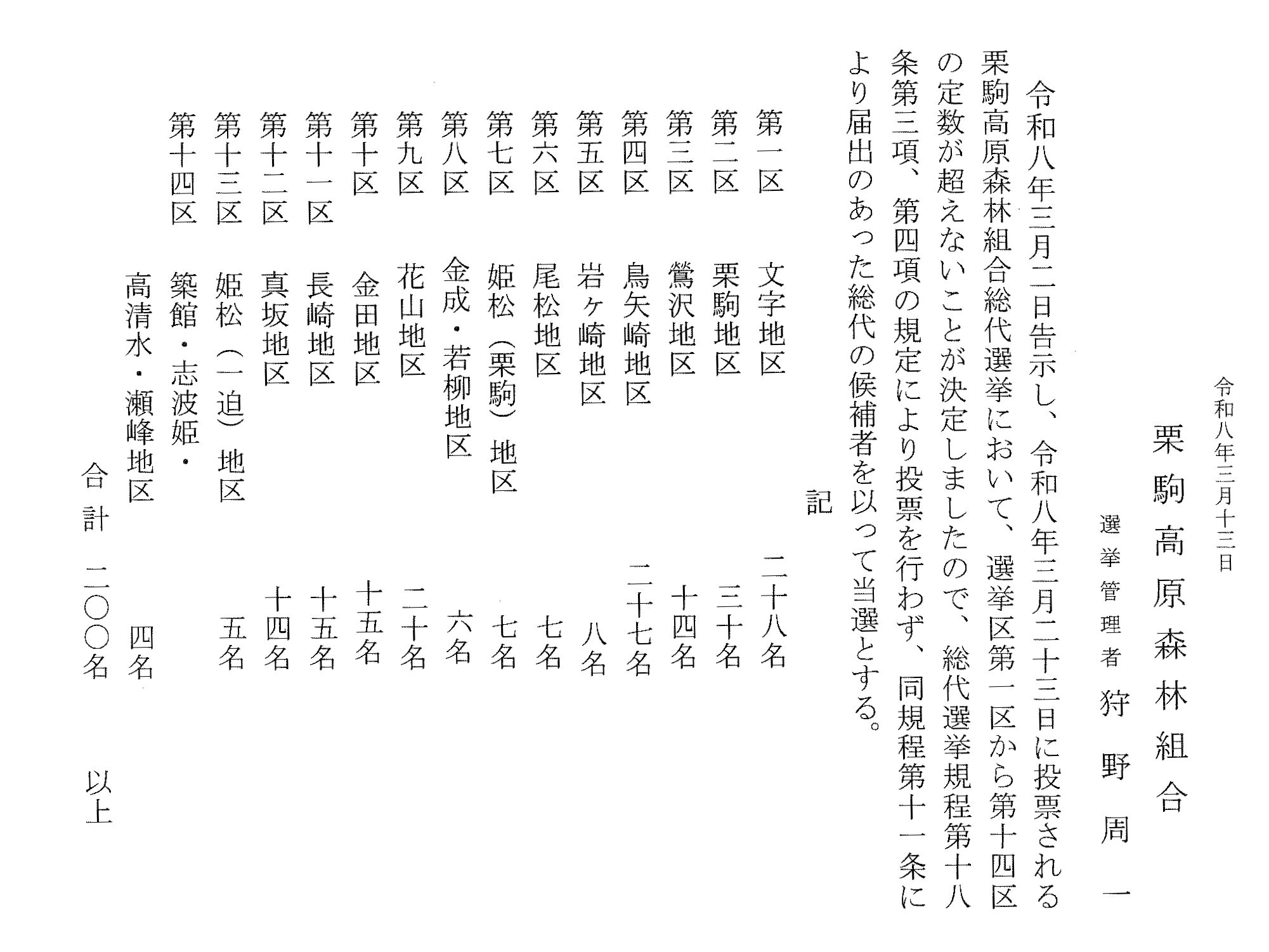 〇令和8年3月2日告示、令和8年3月23日に投票される栗駒高原森林組合総代選挙について